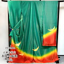 老舗呉服屋が自信を持っておススメ 送料無料手染め 京友禅 金彩 正絹 振袖 緑 成人式 ふりそで 購入 販売 { 振袖 振り袖 成人式
