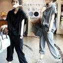セットアップ チュニック&フレアパンツ ふんわり 薄手 夏 ドルマンスリーブセットアップ レディース 2点セット Tシャツ&ワイドパンツ 上下セット チュニック プルオーバー 半袖 バギー イージー ロングパンツ フレア アシンメトリー カジュアル ナチュラル 大きいサイズ ゆったり 体型カバー ブラック 黒 送料無料