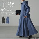 ■一部2月上旬入荷 送料無料 ブラック 黒色 ブルー 青 青色 フリーサイズ S M L 2L 3L LL XL XXL 秋冬ワンピース デニム シャツ ワンピ ロング ロングワンピース デニムワンピース デニムワンピ レディース アウター 長い デニムシャツ シャツワンピース シャツワンピ ライトアウター 長袖 羽織 前開き Aライン おしゃれ 体型カバー 黒 秋 冬 HUG.U