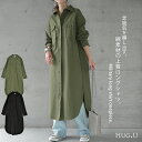 【即納】 送料無料ワンピース シャツ シャツワンピース ノーカラ― シャツワンピ レディース ロング ロングワンピース Aライン マキシ マキシワンピース ワンピ ロングシャツ ロングワンピ 長袖 羽織 きれいめ 体型カバー 大きいサイズ 黒 ベージュ 秋 冬 HUG.U