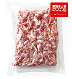 パスタや朝食のスクランブルエッグなどで手軽に使えるお買い得品無加水山桜スモークベーコン コマカット【500g】【冷凍/冷蔵可】【D+0】