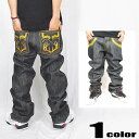 ニューヨークで大きなムーブメントを巻き起こしたレンジーマウンテンが本格的に日本で販売開始!!☆要CHECK!!【在庫処分】RANGY MOUNTAIN COMPANY(レンジ―マウンテンカンパニー)フロント/バック刺繍デザインノンウォッシュデニムパンツ/万華鏡[1942]【HIPHOP/B系/ヒップホップ】