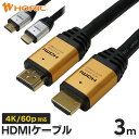 Ver2.0 HDMIケーブル 3m 4K/60p HDR ARC HEC 対応 プレミアムハイスピードHDMI準拠品 18Gbps伝送 3重シールドケーブル 金メッキ端子 テレビ TV パソコン PC ゲーム リモートワーク 映像ケーブル 長い 長距離 配線 延長 ホーリック HORIC