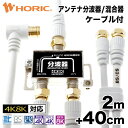 【4のつく日はポイント5倍!】 送料無料 最短当日発送 1年保証アンテナ分波器 混合器 2m + 40cm アンテナケーブル3本付 地デジ BS CS 4K 8K 対応 金メッキ端子 S-4C-FB規格 テレビ用 75Ω 2股 分ける UHF 4K対応 アンテナコンセント 白 ホワイト 長い テレビケーブル テレビ線 アンテナコード 200cm 0.4m 40センチ ホーリック HORIC