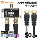 アンテナ分波器 混合器 50cm アンテナケーブル2本付 地デジ BS CS 4K 8K 対応 金メッキ端子 S-4C-FB規格 テレビ用 75Ω TV アンテナ端子 テレビ端子 4K対応 アンテナ線 アンテナコード テレビケーブル テレビ線 テレビコード 2股ケーブル 長め 0.5m ホーリック HORIC