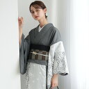 着物 単品 ポリエステル着物 単衣着物 レディース【 utatane 単衣着物 日本製 レース切替 グレー×ホワイト 】レディース 洗える着物 日本製 国産レース お仕立て上がり フリーサイズ 街着 カジュアル着物