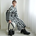 着物 単品 ポリエステル着物 袷着物 レディース着物 袷着物 単品 utatane フリーサイズ(適応身長154-165cm) 日本製 ポリエステル着物 ストライプ レディース 半身 大粒ドットとモダン縞々 グレー×ブラック ちりめん バイカラー