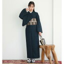 着物 単品 ファブリック着物 単衣着物 浴衣としても【ニコアンティーク 単衣着物 唐獅子 ネイビー 】着物 洗える着物 単衣 レトロ レディース 単品 ファブリック着物 紺 グレー 浮世絵風 街着 ひとえ カジュアル 女性 モダン 個性的 和服 日本製 国産