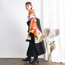 ユーズド 着物 メンテナンス済 中古販売 販売 購入【リサイクル着物】二尺袖着物 単品 袴用 短丈 JAPAN STYLE×中村里砂 大学生 レディース 卒業式 着物 女性 重ね衿縫い付済 中古 USED 販売 おしゃれ オレンジ 古典
