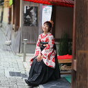 ユーズド 着物 メンテナンス済 中古販売 販売 購入【リサイクル着物】二尺袖着物 単品 袴用 短丈 ニコアンティーク 大学生 レディース 卒業式 着物 女性 中古 USED 販売 おしゃれ 黒 赤 黄 雪輪 レトロ