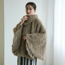 コート レディース アウター エコファー フェイクファー【着物コート ニコアンティーク プードルファー ベージュ】ポンチョ ケープ アウター フリー(身長約152cm-165cm) 和洋兼用 洋服兼用 カジュアル 和装コート シープ調ボア ベージュ系 裏地柄付き 猫 防寒 冬