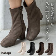 ブーツ 靴 シューズ 防滑 オフィス きれいめ ショートブーツ スクエアトゥ 合皮 スエード調 防滑ソール レディース Honeys ハニーズ スクエアショートブーツ