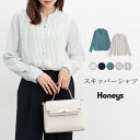 【WEB限定】トップス ブラウス 長袖 大きいサイズ オフィス きれいめ バンドカラー レディース Honeys ハニーズ 【褒められ】フリルピンタックブラウス