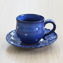 [Made in Japan]萩焼 コーヒーカップ & ソーサー 青ドット 和食器 日本製 萩 風来房 カップ