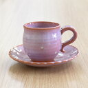 [Made in Japan]萩焼萩焼 コーヒーカップ & ソーサー ピンクドット 和食器 日本製 萩 風来房 カップ