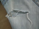 | 特殊な方法で穴を補修いたします。ミシン刺しではかなり目立つお直し跡が、ほとんどわからないくらいに仕上がります。ジーンズ・デニム修理補修