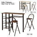 カフェセット [CT-1200 BK×BR/BR×NA] ハイテーブル カウンターテーブル バーカウンター バーテーブル イス チェア 椅子 折り畳み式 棚付