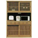 ダイニングボード 食器棚 和風 国産 収納家具 木製食器棚 ダイニングボード 格子作り 日本製 うづくり仕上げ タモ材 キッチン収納 幅90cm 有明 90ダイニングボード