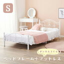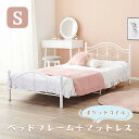 リボンデザインのベッド+しっかりとした寝心地のマットレス【15日限定!確率1/2で最大100%ポイントバック】[マットレス付 シングルベッド ボンネルコイル KH-3099S-WH3301] ベッドフレーム Sサイズ おしゃれ アイアン シンプル 白 大人 かわいい リボン 姫系 通気性