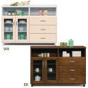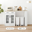 【2口コンセント付き】【ガラス扉収納】引出し付 家電収納キッチンボード【キッチンキャビネット RCC-1493NA-BSWH-BS】Dタイプ 食器棚 調理家電 収納 可動棚 4杯引出し 隙間収納