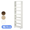 スリムなワゴンラック オープンタイプ幅20cm 隙間収納ワゴン RCC-1534 BR/NA/WH ブラウン /ナチュラル /ホワイト スリム ワゴンラック ストック キッチン ランドリースペース 取っ手 キャスター