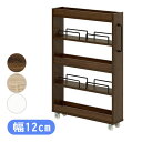 スリムなワゴンラック オープンタイプ幅12cm 隙間収納ワゴン RCC-1532 BR/NA/WH ブラウン /ナチュラル /ホワイト スリム ワゴンラック ストック キッチン ランドリースペース 取っ手 キャスター