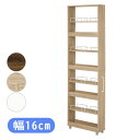 スリムなワゴンラック オープンタイプ幅16cm 隙間収納ワゴン RCC-1533 BR/NA/WH ブラウン /ナチュラル /ホワイト スリム ワゴンラック ストック キッチン ランドリースペース 取っ手 キャスター