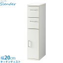 コンパクトで清潔感のある収納チェスト ラック キャビネット 棚 幅20 すきま収納 隙間収納 おしゃれ シンプル コンパクト ホワイト 白 引出し Slender スレンダー SLK-9020KC