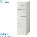 コンパクトで清潔感のある収納チェスト ラック キャビネット 棚 幅25 すきま収納 隙間収納 おしゃれ シンプル コンパクト ホワイト 白 引出し Slender スレンダー SLK-9025KC