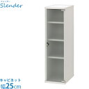 リビング ダイニング おしゃれな収納キャビネット ラック 棚 幅25 すきま収納 隙間収納 おしゃれ シンプル コンパクト ホワイト 白 ガラス扉 Slender スレンダー SLK-9025CA