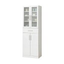 食器やカトラリー たっぷり収納 マンション アパート 単身【ヌーヴォー食器棚 60-180 (27141)】幅60 台所 キッチン収納 キッチンラック キャビネット ダイニングボード 扉付 ホワイト 白 取っ手付き すりガラス 可動棚