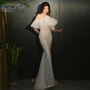 華やかで高級感のあるドレスが新登場パーティードレス♪マーメイドドレス スパンコール キラキラドレス オフショルダー 高級感 イブニングドレス パーティードレス キャバドレス ロングドレス キャバ嬢 タイト 着痩せ セクシー フォーマル 忘年会 結婚式 演奏会 二次会 お呼ばれ