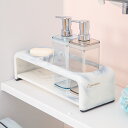 シンプルでスタイリッシュ 2段ワイド収納バスカウンター 石けん皿付き ( バス用品 収納 シャンプーラック シャンプーボトル ステンレス 2段 ディスペンサースタンド ボトルスタンド お風呂 ラック 棚 石けん置き フック付 シンプル ) 【39ショップ】