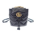 GGロゴが輝く、上質レザーのスモールバックパック。日常も特別な日もエレガントに。グッチ GUCCI スモールバックパック 777253_AAC74_1000 リュック レザー ブラック 黒 GGマーモント レディース【中古】【Aランク】