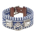 リヴァールカヴァルエルメス HERMES リヴァールカヴァル ブレスレット バングル ヴォーバレニア ブルー コットン ストライプ ホワイト スタッズ カジュアル アクセサリー レザー ファッション おしゃれ レディース【中古】【ABランク】