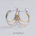 【送料無料】3色のゴールド使用フープピアスフープピアス K18 イエローゴールド ピンクゴールド K14 ホワイトゴールド 3連 3重 3色 トリニティ シンプル ピアス 18k 18金 14k 14金 両耳用レディース 女性用 誕生日プレゼント 妻 母 金属アレルギー 安心 結婚式 お呼ばれ アクセサリー ジュエリー 華奢 即納