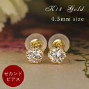 【セカンドピアスにおすすめ】クリアで鮮烈な輝き☆ ファーストピアスの次に18金 ピアス セカンドピアス 18k スーパーキュービックジルコニア 一粒 スタッドピアス 直径約4.5mm 両耳用 K18 ゴールド CZ 送料無料レディース 女性 誕生日プレゼント 贈り物 金属アレルギー 安心 福耳 ポストが太い 長い 即納