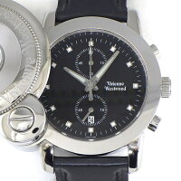 【15日限定★ポイント3倍】 ヴィヴィアン・ウエストウッド Vivienne Westwood 腕時計 VW-2063 スライド式 蓋付きケース デイト クロノグラフ スモールセコンド 夜光インデックス 夜光針 ブラック ギョーシェ文字盤 SS レザーベルト クオーツアナログ 【箱・保付き】 【中古】