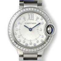 カルティエ Cartier 腕時計 バロンブルー W4BB0034 ダイヤベゼル ダイヤ/シルバー文字盤 SS クオーツアナログ 【箱・保付き】 【中古】