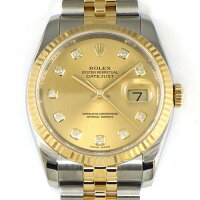 【15日限定★ポイント3倍】 ロレックス Rolex 腕時計 デイトジャスト 36 116233G ルーレット刻印 ランダムシリアル 10ポイント ダイヤインデックス サンレイ シャンパンカラー文字盤 K18YG SS 自動巻き 【箱・保付き】 【中古】