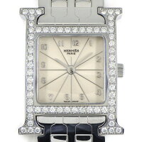 エルメス HERMES 腕時計 Hウォッチ HH1.230 ダイヤベゼル スクエア アイボリーギョーシェ文字盤 SS クオーツアナログ 【中古】