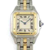 【レビュー1000件記念★対象品3%OFF】 カルティエ Cartier 腕時計 パンテール SM 1ロウ W25029B5 スクエア アイボリー文字盤 K18YG SS クオーツアナログ 【中古】