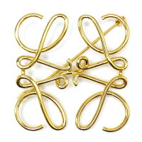 【レビュー1000件記念★対象品3%OFF】 ロエベ LOEWE ブローチ アナグラム ゴールド 111.25.020 真鍮 GP 【中古】