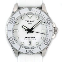 【レビュー1000件記念★対象品3%OFF】 ティソ TISSOT 腕時計 シースター T120.210.11.011.00 ホワイト文字盤 デイト 夜光針・インデックス 回転ベゼル ラバーベルト SS クオーツアナログ 【箱・保付き】 【中古】