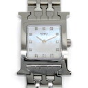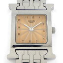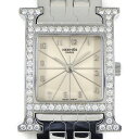 【レビュー1000件記念★対象品3%OFF】 エルメス HERMES 腕時計 Hウォッチ HH1.230 ダイヤベゼル スクエア アイボリーギョーシェ文字盤 SS クオーツアナログ 【中古】