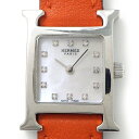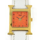 【レビュー1000件記念★対象品3%OFF】 エルメス HERMES 腕時計 Hウォッチ HH1.190 12ポイント ダイヤインデックス スクエア ホワイトシェル文字盤 オレンジ レザーベルト K18WG クオーツアナログ 【中古】
