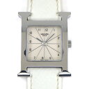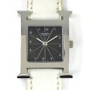 【レビュー1000件記念★対象品3%OFF】 エルメス HERMES 腕時計 Hウォッチ HH1.210 スクエア アイボリー ギョーシェ文字盤 SS ホワイト ヴォー・エプソン レザーベルト クオーツアナログ 【箱・保付き】 【中古】