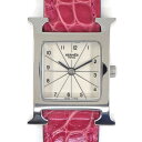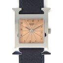 【レビュー1000件記念★対象品3%OFF】 エルメス HERMES 腕時計 Hウォッチ HH1.210 スクエア アイボリー ギョーシェ文字盤 SS ピンク アリゲーターレザーベルト クオーツアナログ 【中古】