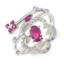 【ルビー ダイヤモンド】 リング フラワー 2モチーフ ルビー 計0.33ct ダイヤモンド 計0.44ct K18WG 12.5号 【中古】