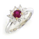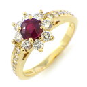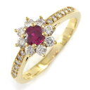 【ルビー ダイヤモンド】 リング フラワーモチーフ ルビー 計0.27ct ダイヤモンド 計0.18ct K18WG 9号 【中古】